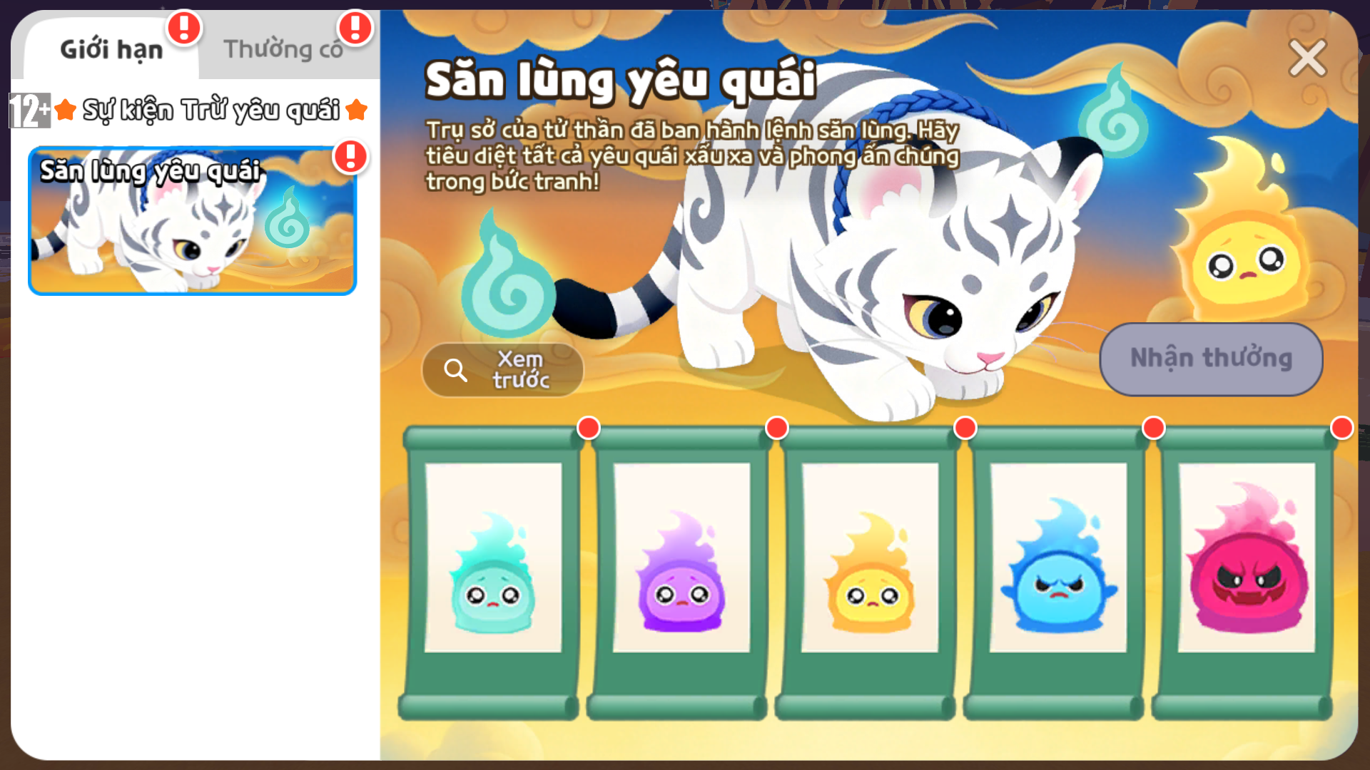 Khi hoàn thành, bạn sẽ nhận được “Hình vẽ dấu ấn yêu quái”, gói thẻ VVIP/VIP và Xu yêu quái!