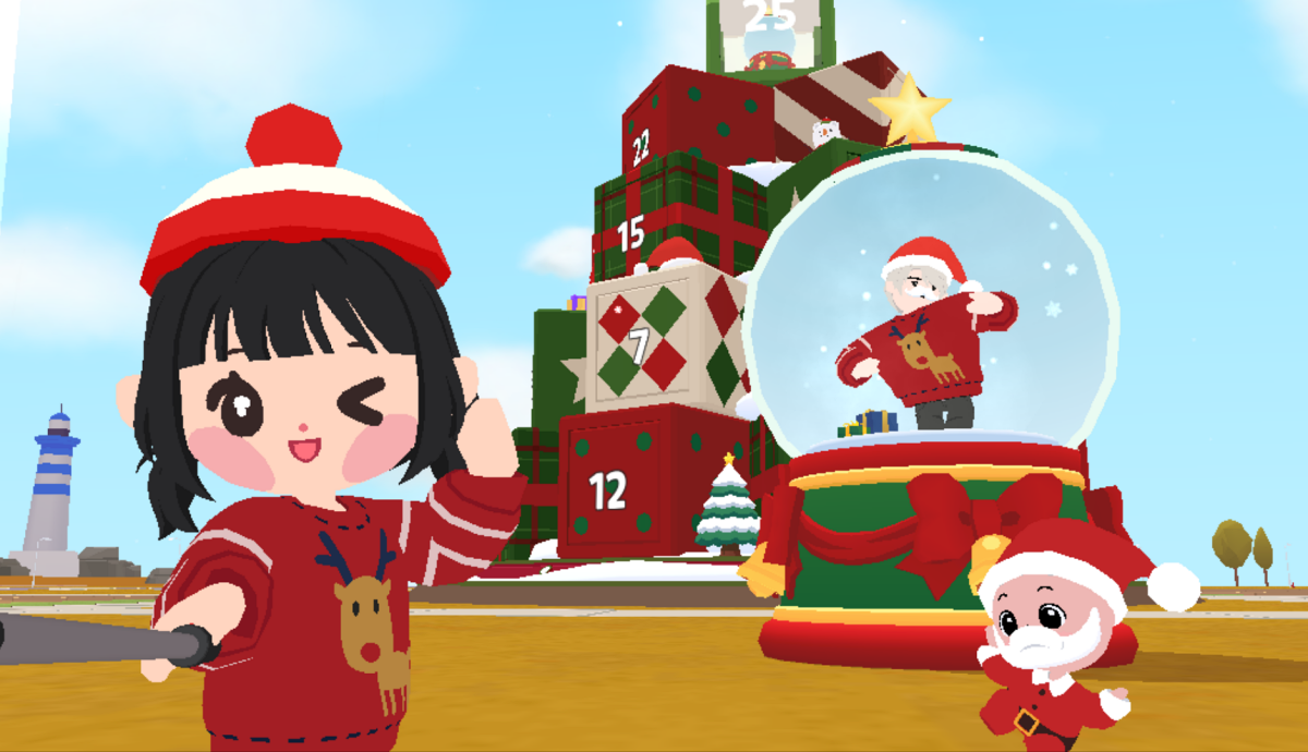 Hãy nhận “Nội thất Giáng Sinh”, “Bộ trang phục Giáng Sinh” và “Quả cầu tuyết Giáng Sinh” làm phương tiện.