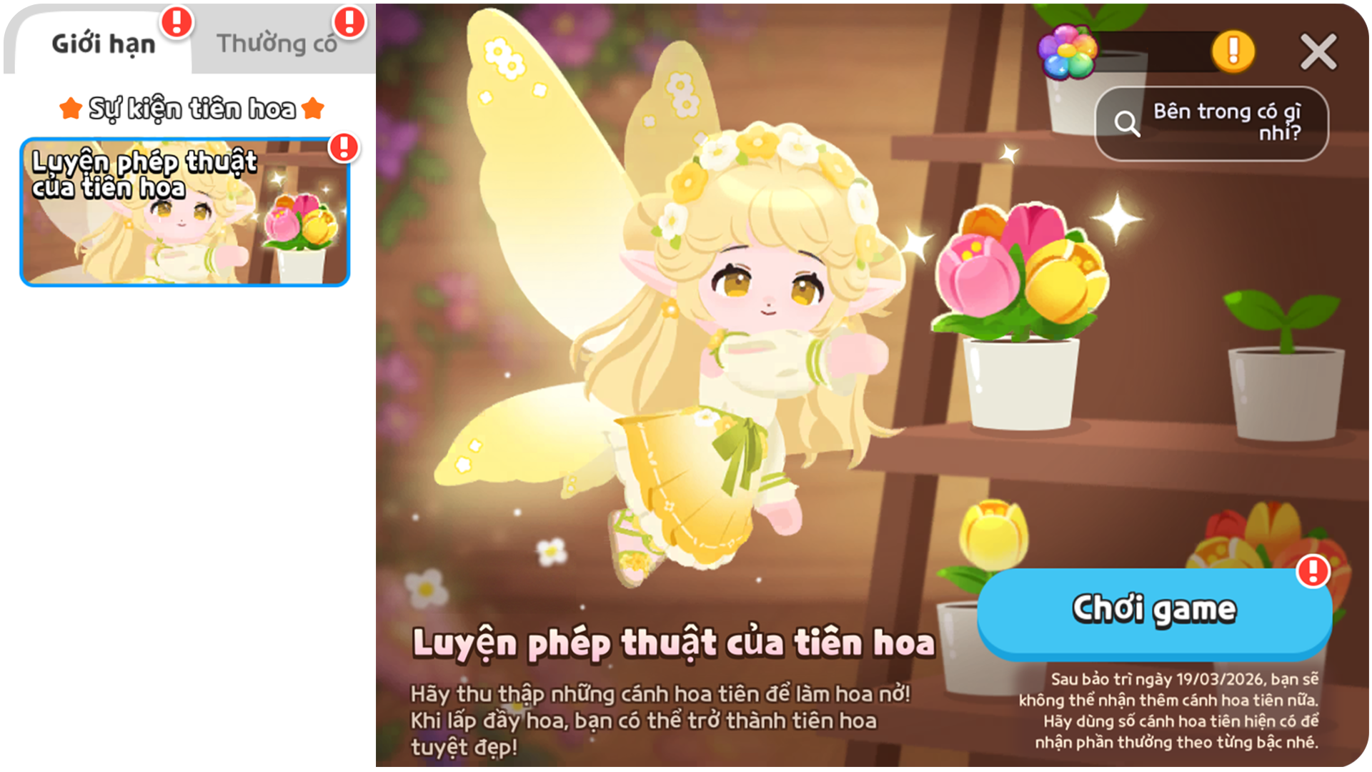 ▶ Minigame “Luyện tập phép thuật của tiên hoa”